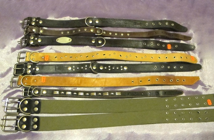 ещё мне не дорогой ошейник на среднюю собаку нужно да и поводок брезентовый если есть.