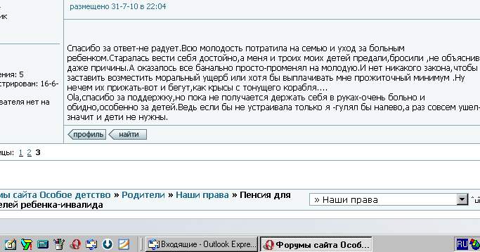 Вот поэтому на мать ложатся двойные тяготы и заботы. И если вторая половины могла бы хотя бы посидеть с больным ребенком, поприсутсвовать рядом пока один из родителей занимался чисто организационными проблемами и походами в различные инстанции (сходи туда, сходи сюда), то уже помощь была гораздо существенной.