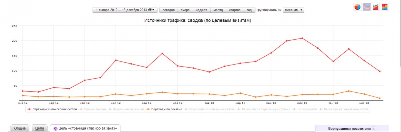 Я уже выкладывал скрин с метрики, где количество конверсий (с заказом в интернет магазине) постоянно растет, а с директа остается примерно на одном уровне.