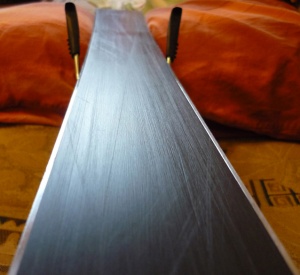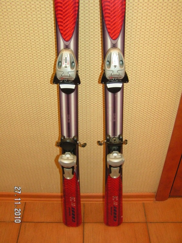 Лыжи куплены в конце сезона 08/09, хорошо покатались в прошлом сезоне, в этом совсем чуть-чуть. Состояние скользяка - 4+. Есть мелкие царапушки, которые ни на чем не сказываются будучи даже не запарафинины. Состояние кантов - 4+. Точены на 88 градусов. Острые! Точить еще ого-го как можно Верхняя поверхность с царапами от кантов товарищей Ну я бы 4 поставил за состояние. Крепы RF 11.