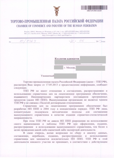Кстати, эти дела заводились на основании Ваших "справочника цен НП ППП" якобы от ТПП РФ и так называемых "доверенностей", собственно на их же основании и развалились