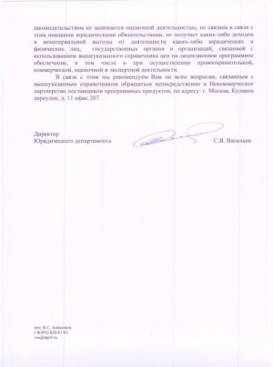 "... согласно Постановлению Пленума Верховного суда РФ №14 при установлении признаков крупного размера деяний следует исходить из розничной стоимости оригинальных экземпляров произведений на момент совершения преступления. По прайс-листам официальных дилеров Майкрософт в Краснодаре цены, приведенные г-ном Ивуть, завышены от 24% до 40%! Так и не ясно, на основе чего представитель Майкрософт привёл именно ту стоимость, которая легла в основу постановления о возбуждении уголовного дела..."Ну и вот скан извинения прокуратуры за незаконное уголовное преследование по указанному выше делу