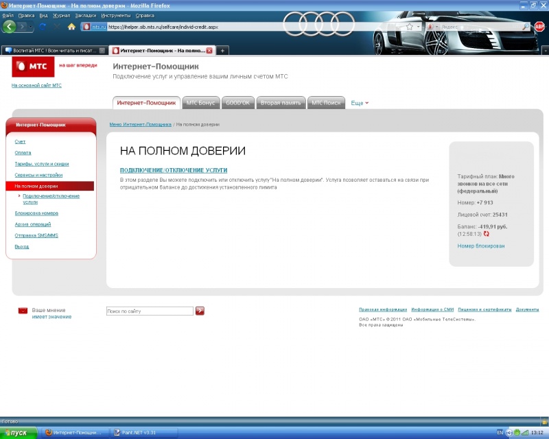 Считаю услугу мне навязанной, стоимость не указана на странице где находится карта! Не давал также согласия на открытие кредита в 420 руб. (напомню телефон был блокирован) Считаю данный вид заработка омерзительным. Тоже самое, что старикам продавать "лекарства" или "чудо приборы" от всех болезней. Такими методами мтс показывает полное не соответствие в своей рекламе.