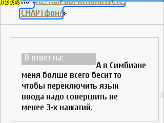 А в Симбиане меня болше всего бесит то чтобы переключить язык ввода надо совершить не менее 3-х нажатий.язык переключается нажатием одной клавиши.у вас если не секрет был вообще смарт на Symbian?