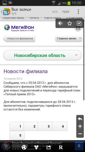 С 30.04.2013 для абонентов тарифного плана «Теплый прием 2010» Сибирского филиала ОАО «МегаФон» (далее по тексту СФМ) меняется и устанавливается размер платы за услуги связи: