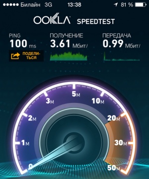 Тесты скорости 3G интернета от Мегафон и Билайн в одном и том же месте, с одного и того же устройства. Район метро Покрышкина.