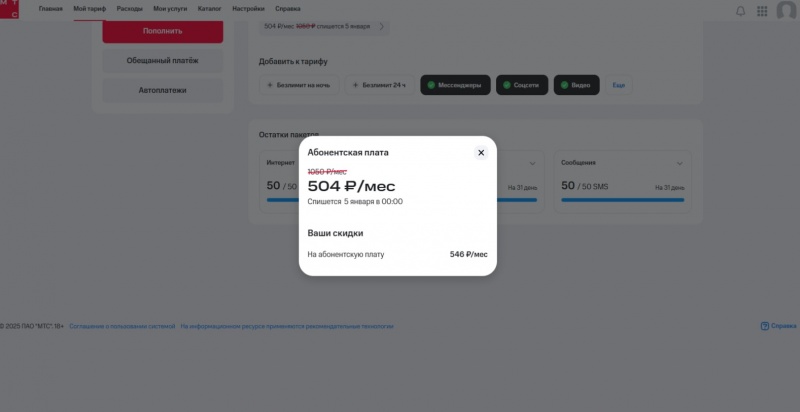 Сейчас новых услуг я не заметила, а тариф вырос на 64 рубля.
