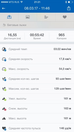 просто катуха была - вся лыжня заглянцевалась (потому и макс.скорость 54), обычно я, конечно же, медленнее бегаю