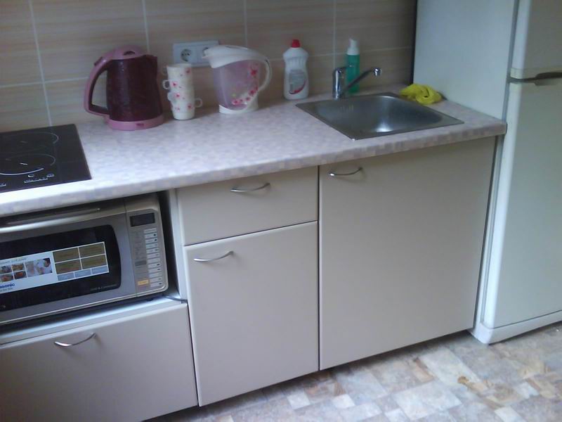 Сейчас вот уже не переделать, конечно, но надо было мойку поперек ставить, тесновато чуток и брызги аж до плиты.