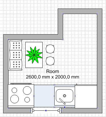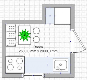 Проход достаточно узкий, там стандартный холодильник только встанет.ну я же очень условно обозначила обеденную зону. Если длина стены 200 см, ширина рабочей зоны 60 см, длина дивана 80 см, то расстояние между обеденной зоной и духовкой получается 200 см - 60 см - 80 см =60 см, этого вполне достаточно.