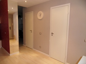 Так когда определялись с цветом стен, то пол и двери еще не были куплены. Обязательным условием был белый цвет - либо стены, либо плинтуса и двери. Когда решили, что белыми все же будут стены, то стали подбирать цвет пола и дверей.