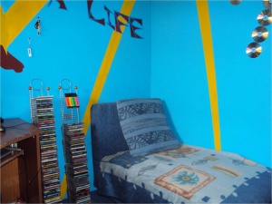 А выравнивать гипсокартоно либо штукатуркой было дороговато для меня по тем временам. Да и тупо как-то....Кстати, нашла фото спальни без народа....