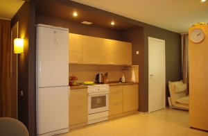 Супер!!! Очень понравилось решение с кухонной зоной - и само место ее расположения, и внешний вид. Да и рабочий уголок тоже удачно расположен. В общем, грамотно! Удачи Вам с новым проектом!