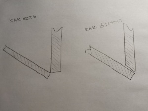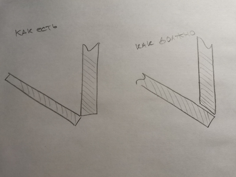 при расчете дверей ошиблись. двери должны быть шире, примерно на 16-18мм (на вашем фото видно все, кроме того, что нужно увидеть) правую стоевую нужно было запилить под угол, но, скорее всего, не нашли нужной ширины кромку.