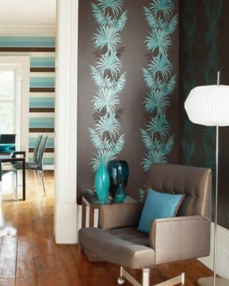 Всем здравствуйте. Может кто видел, ищем обои коричневого цвета с бирюзовым рисунком, что-то наподобие этого