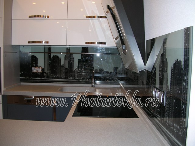 Сегодня сдали кухню со стеклянным фартуком. На стекле интерьерная печать (с обратной стороны естественно)