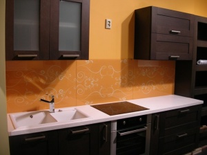 Мне в свое время тоже очень хотелось сделать фартук из стекла, немного тонированного с металлическим креплением (насмотрелась журналов).