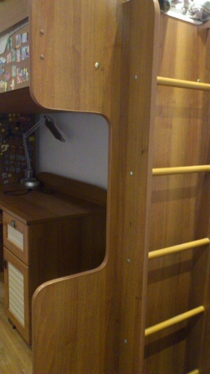 Продам детскую кровать-стол. На втором ярусе кровать, под ней - стол письменный с тумбой. Очень компактно. Почти новое, бу совсем немного. К кровати прилагается новый матрац. Продам за 13000,00 Возможен торг