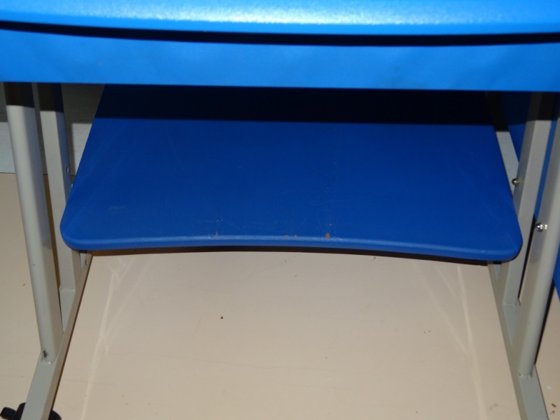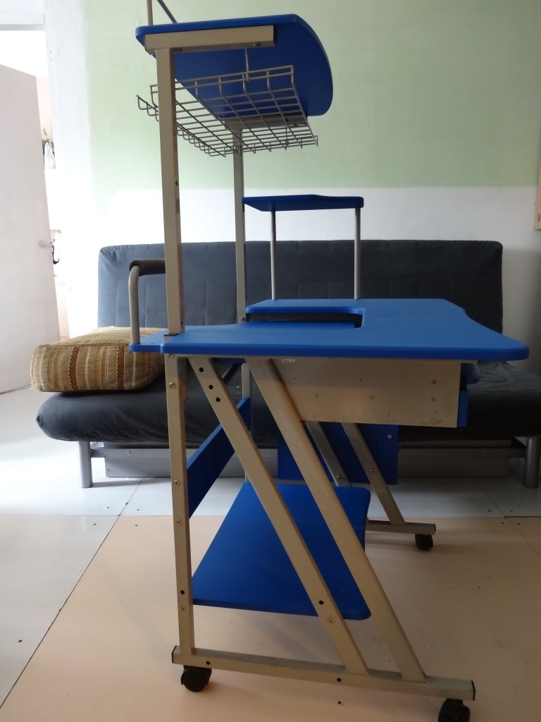 Всем доброго дня. Продам синий компьютерный стол б/у. небольшие неровности на нижней полке (видно на фото).