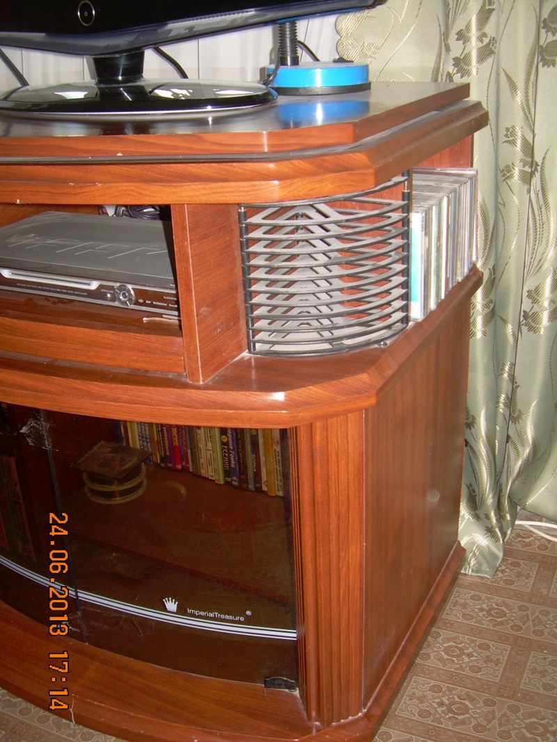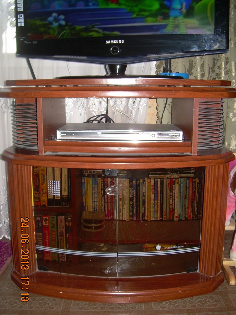 2. Тумба под ТВ и аппаратуру, полка выдвижная. За стеклянными дверцами полки. Цена 700 руб.