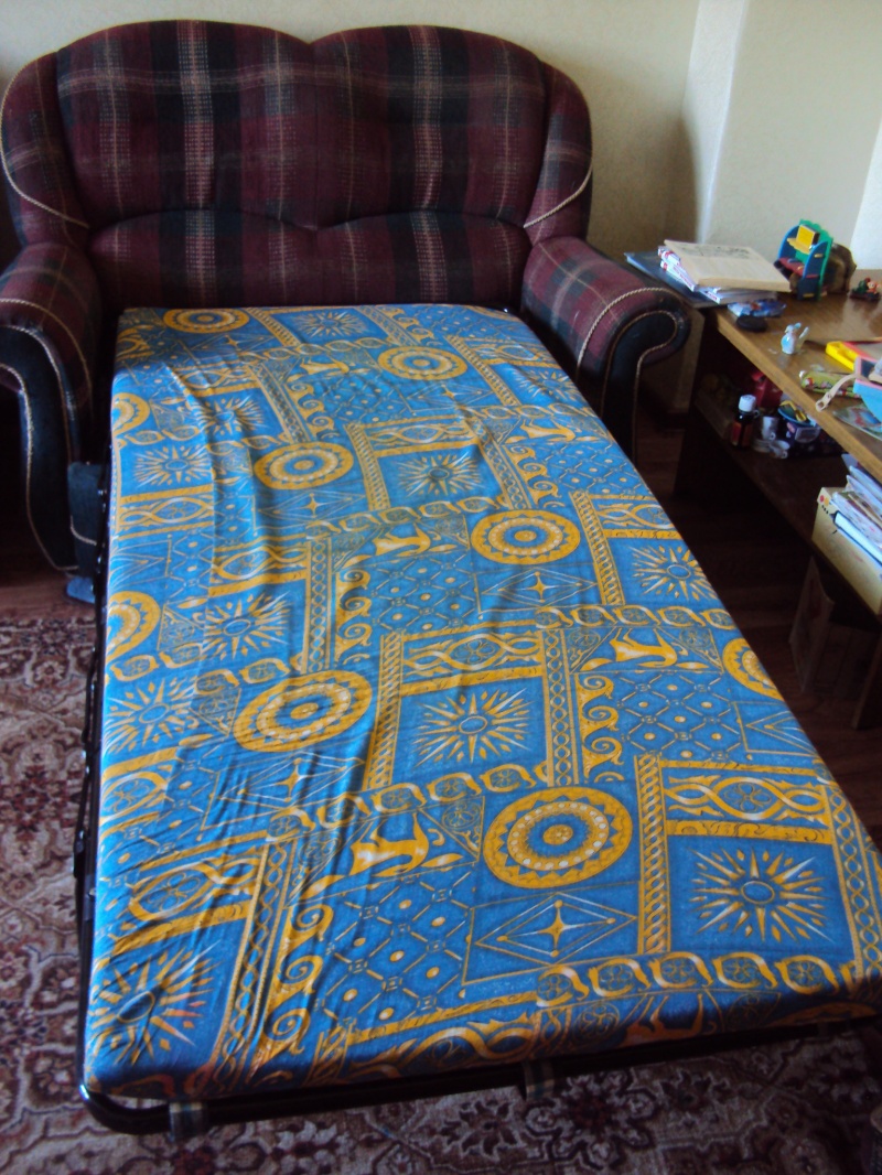 Продается диван-кровать. Б/у 4 года, состояние среднее, цена 700 р. Территориально находится на ост. Лада, возможна доставка за 400 р.