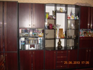 1. Стенка 4 секции производство Польша, цвет Вишня. Цена 6 тыс. руб.