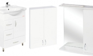 Нужна тумба с раковиной (ширина 50-56 см, например уют 55, элегия 60), зеркало (50-60 см, например астра 60), навесной шкаф (60 см)