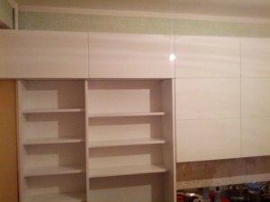 Левые навесные секциии еще не закрыты зеркальными створками-купе.