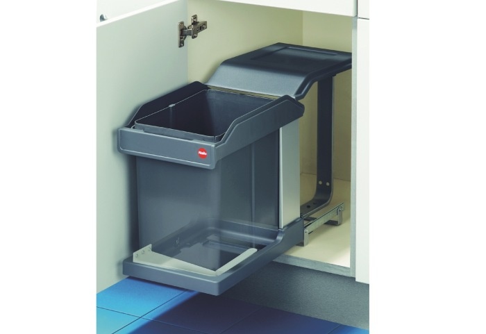 в чем прелесть выезжающей корзины - все, что упало мимо ведра - упало на пол и легко убралось. в твоем варианте все падает в ящик, и твердое и сопливое, типа куриной шкуры. в итоге - грязь, которую трудно убрать (что на фото и видно).