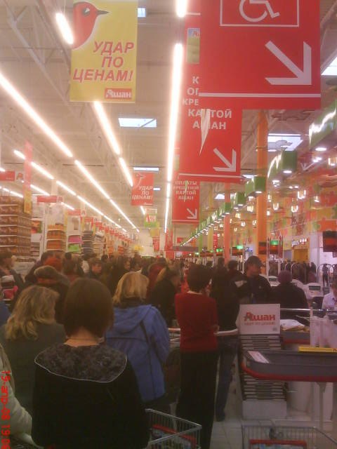 Ашан, отпадает желание что-то покупать, как только видишь сколько народу на кассах стоит с полными тележками