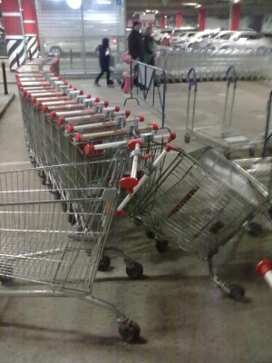 Сегодня убытку понёс в Ашане на 10 залоговых рублей за тележку.