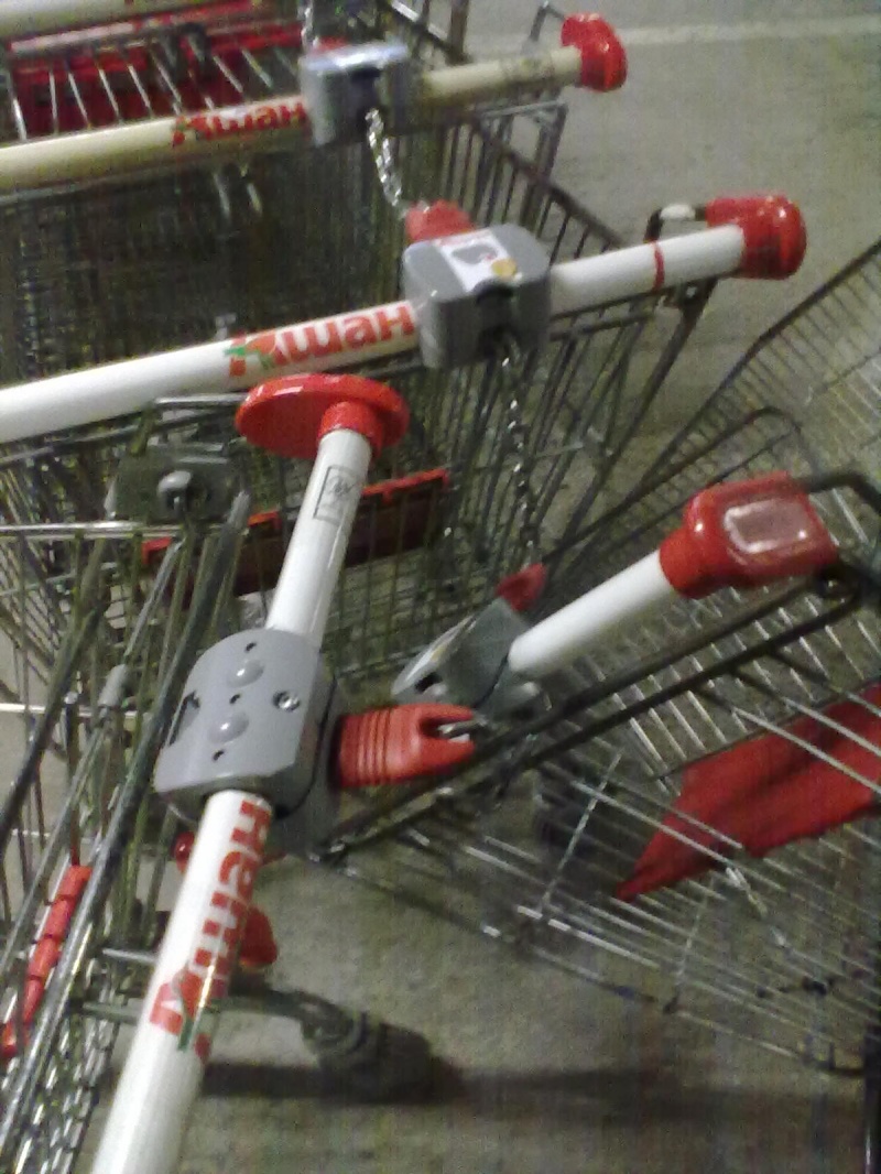 Намедни, в кои-то веки раз, воспользовался тележкой в Ошане. По окончании шоппинга откатываю телегу на телегопарковку и - оппа! - десятки там уже нет. Видимо, кто-то ушлый её выковырял, пока я шарился в глубине ряда, оставив телегу в его торце. Мелочь, конечно, а неприятно.