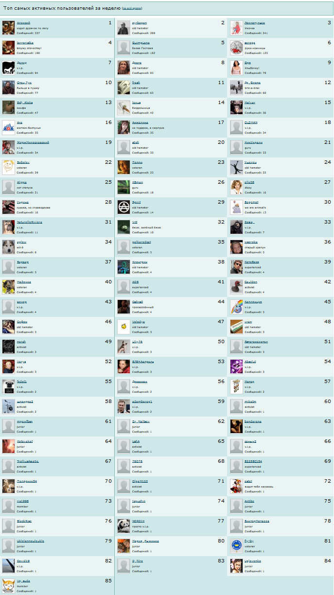 При 85 посетителях за неделю (по всему форуму), из которых рекламщиков можно вычесть, это еще нормальный результат