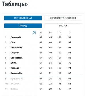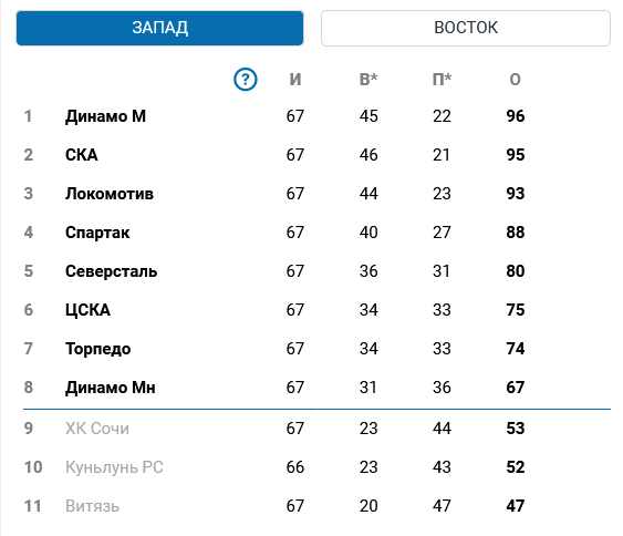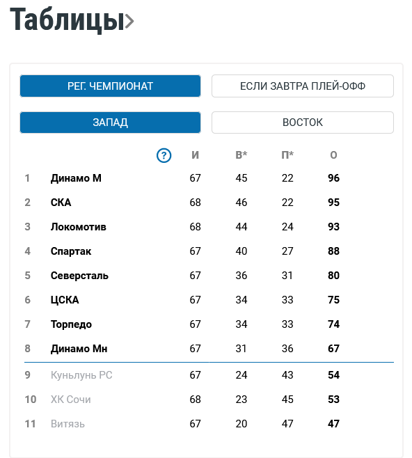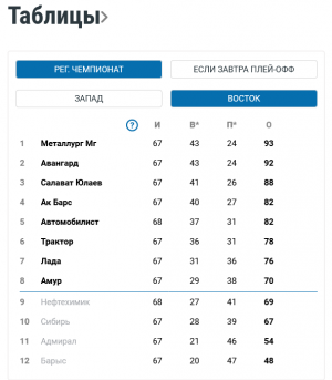 Таким образом, «Авангард» с 92 очками всë-таки занимает 2-е место в Восточной конференции КХЛ. Первый соперник в плей-офф Кубка Гагарина – «Лада» из Тольятти.