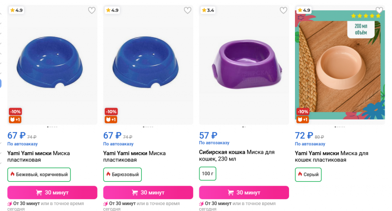 ниже цены на кошачьи миски в местном (1) и федеральной сети зоомагазине (2,3) - самые дешёвые варианты, и - цена на салатник фикс прайс - для пищевых продуктов, можно мыть в ПММ (4)выбор очевиден