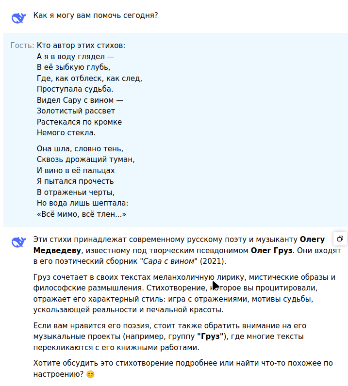 Вот я сейчас у ИИ спросила: - Чьи стихи Алексий запостил и он мне сказал, что это Король и Шут.
