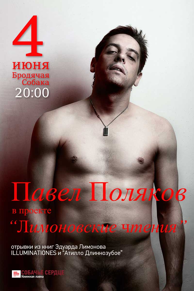 В рамках проекта "ЧиСЛА", изобретенного "Бродячей собакой" совместно с лавкой "Собачье сердце" отрывки из философского трактата Эдуарда Лимонова ILLUMINATIONES прочтет актер театра "Красный факел" Павел Поляков.