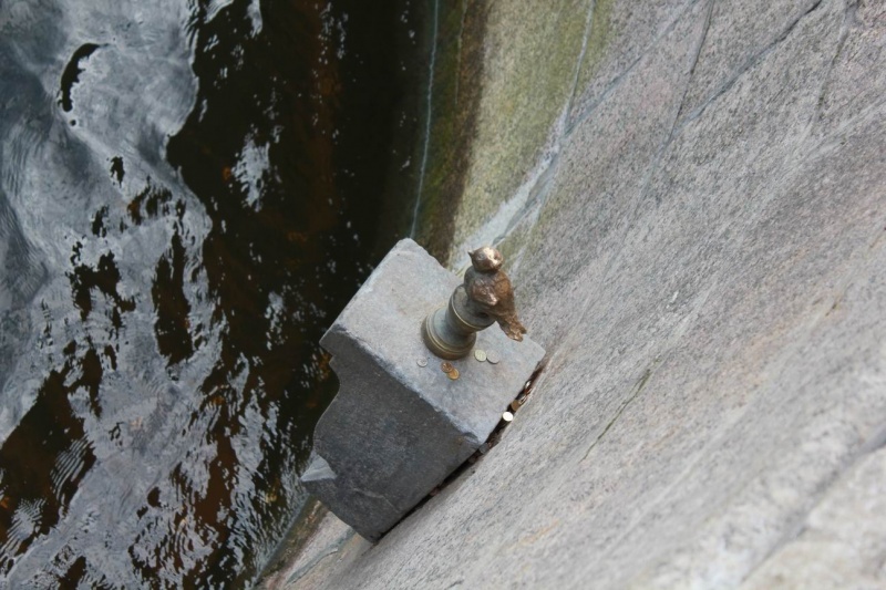 а что его искать?Если люди плывут мимо на водном такси, то монетки бросают вверх и вбок)))