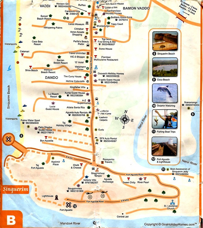 Пляжи все разные поэтому желательно объехать как можно больше из них. На пляж Coco заглядывают редко, т.к. он немного в стороне от побережья в дельте реки Нерул. (Циферка 9 на крте) а зря. Нам понравилось. Заезжать надо со стороны дороги которая ведет в Панжим, в верхней части карты через мост. Указатель на пляж по дороге есть, надо только не пропустить т.к. они не на синем фоне как у нас, а на зеленом, да еще и среди ветвей, да и зачастую очень потрепанные, в общем сливаются с окружающей средой.