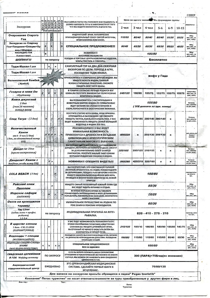 Разбирал бумаги, наткнулся на на пегасовский прайс с экскурсиями. Может кому пригодится. Тем более, что сезон не за горами.
