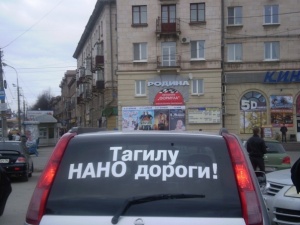 PS. Надпись: "Почему Путин не ездит на Ладе?"