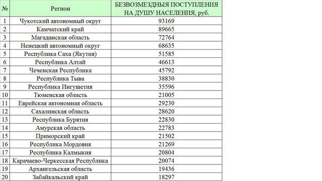 Откуда табличка то? Как у нас "рисуют" статистику надеюсь пояснять не надо. Большие вроде , а в сказки верите. Может кадыра бояться и деньги доходят до населения. а про магадан думаю нет.