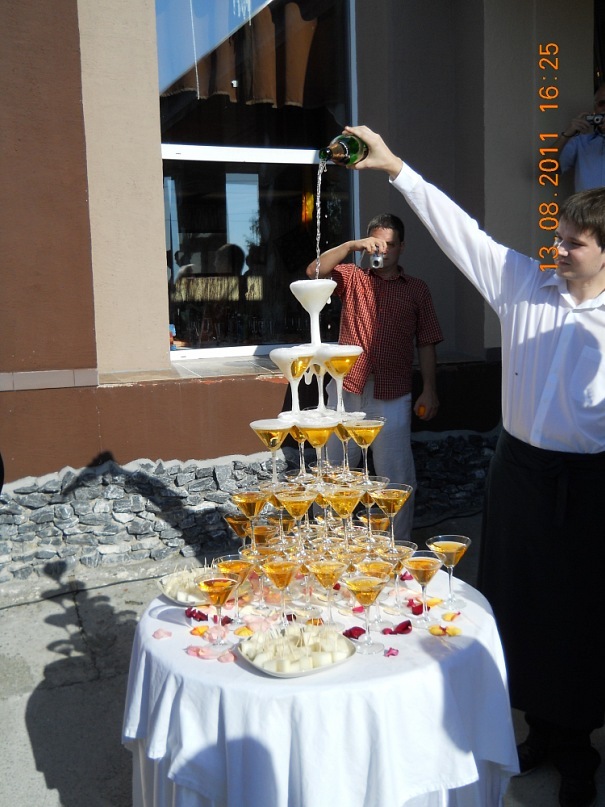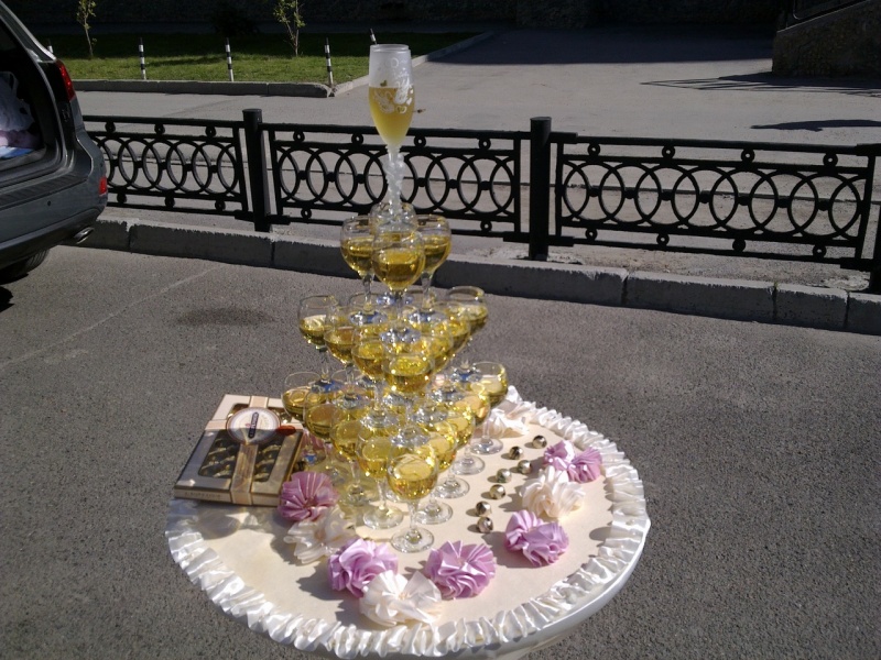 Во-первых, мы закрутились и из головы вылетело, что нужно было за пару дней привезти шампанское, нам позвонили и сказали, что ничего страшного, отдадите возле загса. Во-вторых, уже стоя возле загса мы поняли, что нет с собой телефона и не знаем, как они сейчас нас найдут и станут ли искать, т.к. никакой предоплаты не было, шампанское не отдали, еще и на звонки не отвечаем. Уже мысленно смирились, что горки у нас не будет, и сами виноваты. Но нас все же нашли, шампанское забрали, и к выходу из загса гостей ждал приятный сюрприз. Еще раз спасибо!Горка шампанского от 20 до 50 бакаловподскажите шампанское наливается сразу или это как шоу перед гостями разливается шампанское??