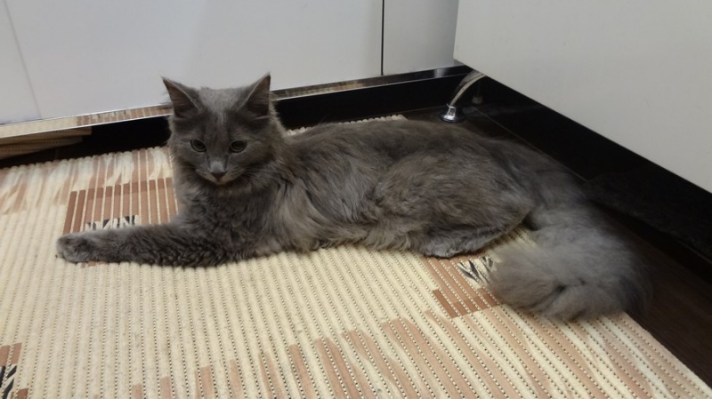 найден длинношерстный дымчатый кот (Калиниск. р-н)