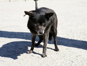На улице Бориса Богаткова на проезжей части подобрана маленькая черная собачка с тонкими ножками с серебристым, само тело немного пушистое. На вид старая.
