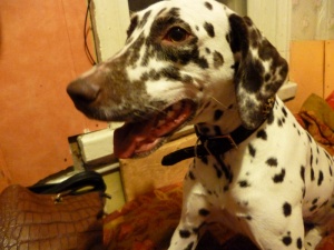 Срочно нужна помощь. Сегодня на остановке Лесоперевалка был найден далматин, девочка. Собака явно домашняя, в ошейнике, в хорошей физической форме.