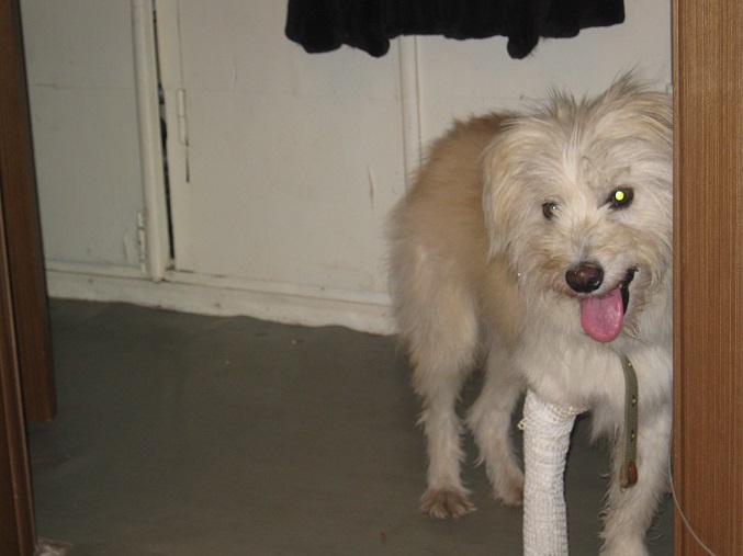 Ситуация следующая,поехала узнавать на Петропавловскую,соседи пёсика опознали,но хозяин на тот момент уехал на дачу(сказали без собаки),за это время пёс повредил лапу,повезла на ренген,перелом,наложили гипс,замечательные люди (соседи с первого этажа этого дома) согласились оставить его до приезда хозяина т.к. были уверены что это собака их соседа,но.... сосед вернулся с дачи со своей собакой .