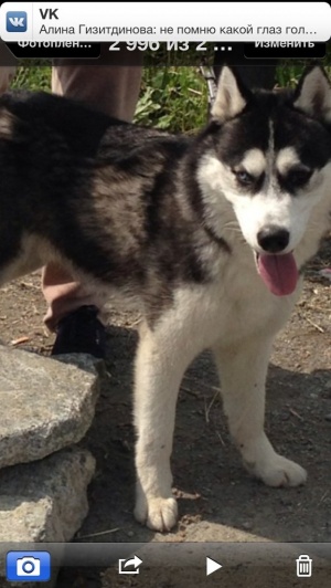 Сегодня днем видели кобеля хаски с глазами разного цвета, на шее оборваный ошейник, т.к. очень осторожный к людям, сфотографмровать не удалось. точную информацию о месте прбывания сообщим по т. 89134806815. и т.89618469032.