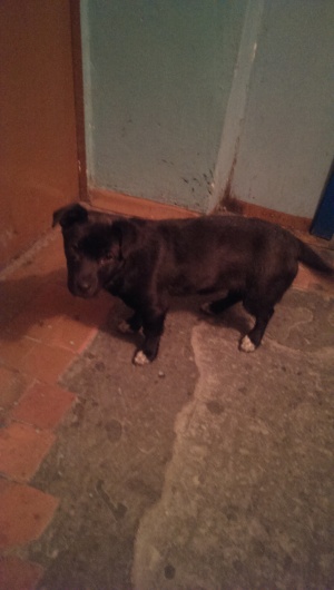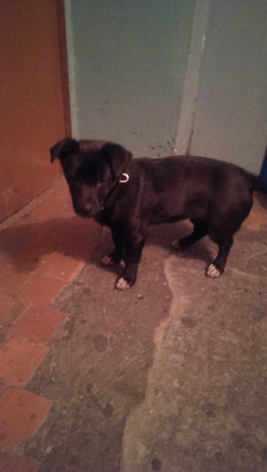 Сейчас вечером за моим мужем в подъезд забежал щенок дворняжки на коротких лапках. Окрас черный, пальчики белые в крапинку, ушки висят, кажется девочка. На вид месяца 3-4. Знает лифт.