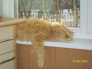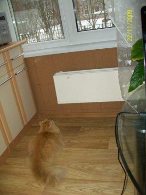 Смотрю на своего идиота и думаю, когда ж ему надоест биться головой об оконное стекло? :-) Охотник, блин...